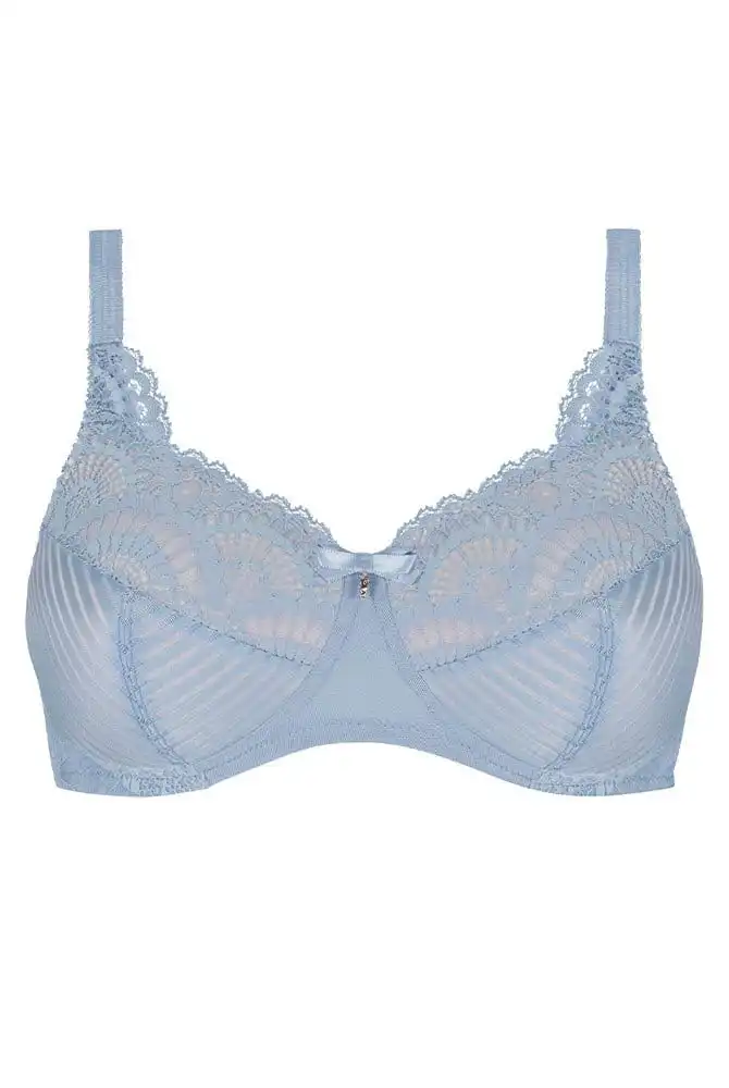 Der Amoena Prothesen-BH Karolina überzeugt mit besonderem Komfort: Die wattierten, dreigeteilten Cups mit eingearbeiteten Taschen und die optimale Schnittführung des Amoena BHs mit Rückenverschluss versprechen einen perfekten Sitz für eine Prothese oder Ausgleichsschale. Der Prothesen BH inspiriert durch bezaubernde Spitze in Fächeroptik am oberen Teil der Cups und macht den bügelfreien Soft-BH Karolina zu einem exzellenten Blickfang. Der untere Teil der Cups ist gestreift gearbeitet. Der exquisite Stil des Prothesen BHs von Markenhersteller Amoena wird zudem durch die hochwertige Spitzenverarbeitung an den Seiten und am Trägeransatz unterstrichen. Eine kleine Satinschleife, mit edlen goldenen Anhänger, ziert den Mittelsteg, der aus durchlässigem aber unterfütterten Netzmaterial gearbeitet ist. Die Träger sind verstellbar und werden mit zunehmender Größe zur entspannten Rückenentlastung breiter. Diskrete weiche Prothesentaschen beidseitig behalten Ihre Brustprothese sicher verwahrt, den ganzen Tag lang. Der Prothesen BH ist aus angenehmer Mikrofaser gearbeitet und trägt sich daher besonders weich und komfortabel. Kombinieren Sie zu Prothesen BH Karolina den eleganten Slip der Serie und tragen Sie ein verführerisches Set, das Ihre Weiblichkeit betont.