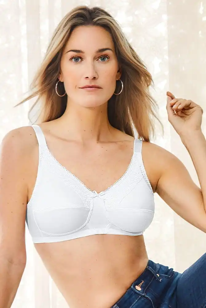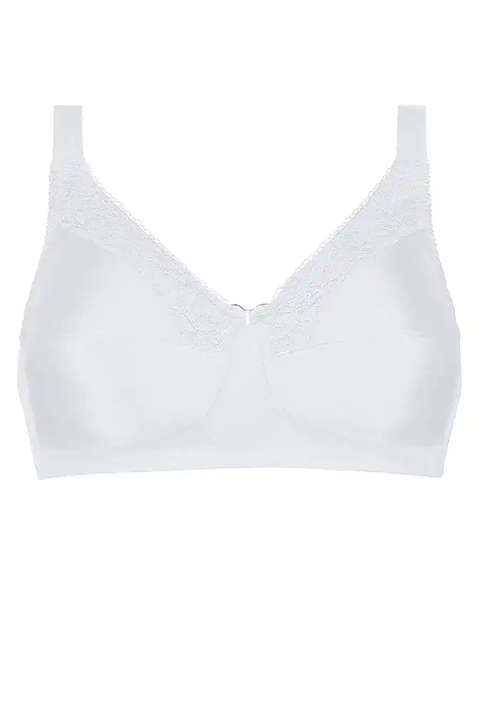 Der designstarke und funktionale Prothesen BH ist auch für große Größen empfehlenswert. Ihre weiche Silikonbrustprothese rutscht nicht heraus und klappt beim Vorbeugen nicht nach vorn weg. Sicher liegt die Brustprothese eng am Körper. Der gute Sitz wird durch geteilte Cups im Prothesen-BH für alle Größen unterstützt. Durch eine feine Spitze entlang des Ausschnitts und die Schleife mit zierlicher Perle am Steg erhält der Prothesen BH eine charmante Note.