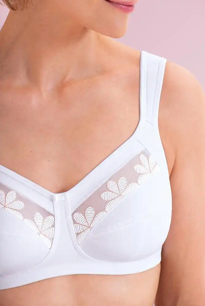 Qualitätsmarke Anita Care überzeugt mit Design der Extraklasse. Blickfang des hinreißenden Spezial-BHs Sophia ist die zarte Blütenstickerei am Dekolleté, die durch eine hübsche Schleife gekonnt abgerundet wird. Durch das dreigeteilte Cup und die seitlichen Blenden sitzt der BH sicher und angenehm. Die beidseits eingearbeiteten Prothesentaschen bestehen aus weichem Material und liegen angenehm auf der Haut. Der bügellose Prothesen BH Sophia von Anita Care mit Prothesentaschen überzeugt durch hochwertiges Material und perfekten Schnitt. Dank seiner luftdurchlässigen Struktur sorgt er für einen spürbaren Klima-Komfort. Die zarte Blüten-Stickerei zaubert frische Akzente in das wunderschöne Design des Prothesen BHs. Die gepolsterten Träger sind verstellbar und entlasten Schultern und Nackenbereich. Der weiche Rückenverschluss wird mit zunehmender Größe breiter.