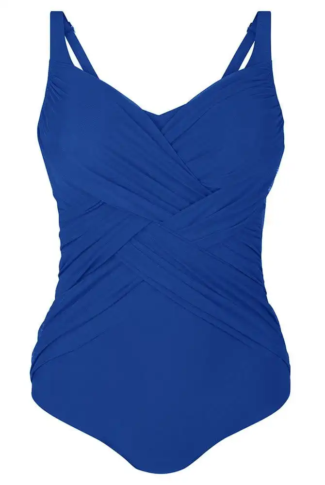 Der leuchtend blaue Badeanzug Aileen aus der Anita Serie Paisley Blossom sorgt mit seinem herrlichen Blau und der raffinierten diagonalen Stoffgestaltung vorn für einen imposanten Blickfang. Das hochwertige Shape-Material schmiegt sich weich an Ihre Haut und bewirkt einen vorteilhaften slimming-Effekt. Die weichen Cups sind mit Bügel gearbeitet und vermitteln perfekte Formgebung und Sicherheit. Die diagonalen Raffungen im vorderen Bereich bewirken eine optische Verschlankung der Figur. Die komfortablen Träger sind verstellbar, der Beinausschnitt ist moderat.