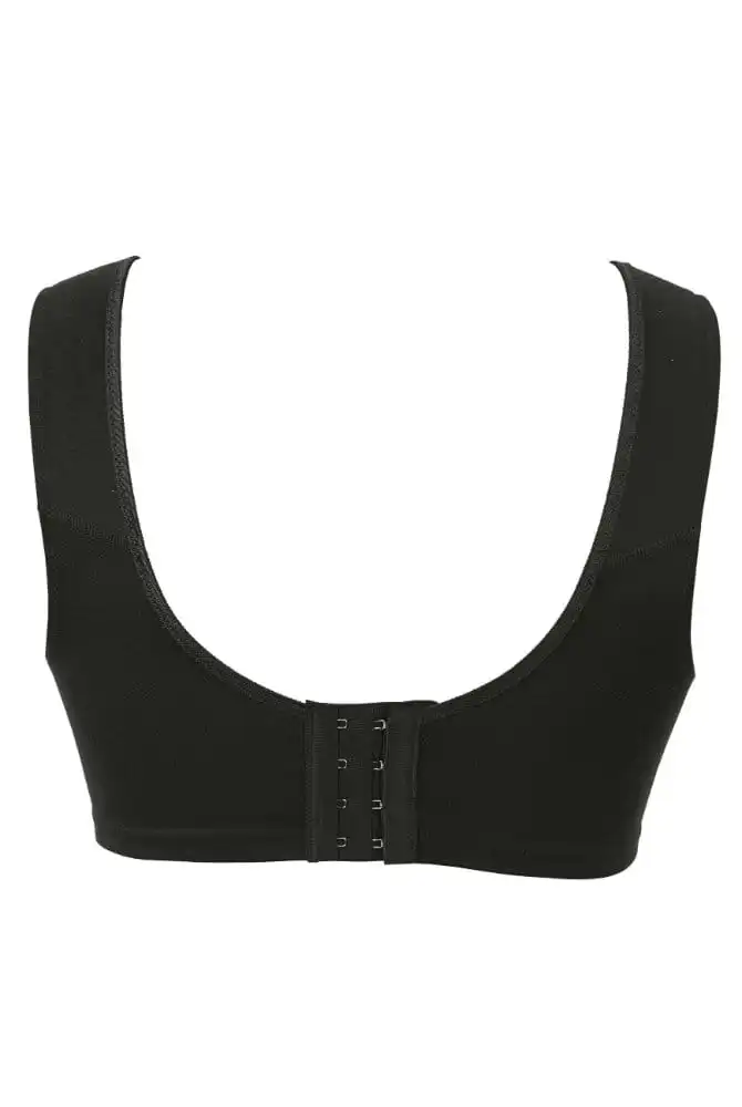Die breiten Entlastungsträger sind eine Wohltat für Schulter- und Nackenpartie. Im Schulterbereich ist beim Entlastungs-BH Clara ein Schaum-Polster mit stützenden Stäbchen eingearbeitet. Die nicht verstellbaren Entlastungs-Träger sind ca. 5 cm breit. Durch den elastischen Stoff, passen sich die Träger bestens den unterschiedlichen Körperhöhen an. Der breite Rücken in Leibchenform ist 3-fach verstellbar mit jeweils 4 Häkchen.