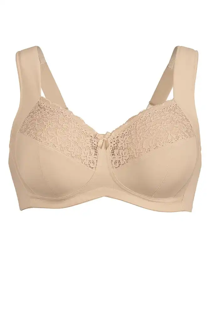 Anita Entlastungs-BH aus Havanna-Wäscheserie ist angenehm zu tragen. Die starke Oberweite erhält dank seitlich eingearbeiteter Blende und 3-geteiltes Cup guten Halt und schöne Passform. Attraktiv und schmeichelnd beim Entlastungs-BH Havanna für die große Brust sind transparente Spitzeneinsätze in der oberen Cup-Hälfte, die dem funktionellen Entlastungs-BH eine bezaubernde Optik geben. Trägerbreite beim Havanna Entlastungs-BH ohne Bügel ist nach Größe des BHs gestaffelt, um einen optimalen Tragegenuss zu geben.