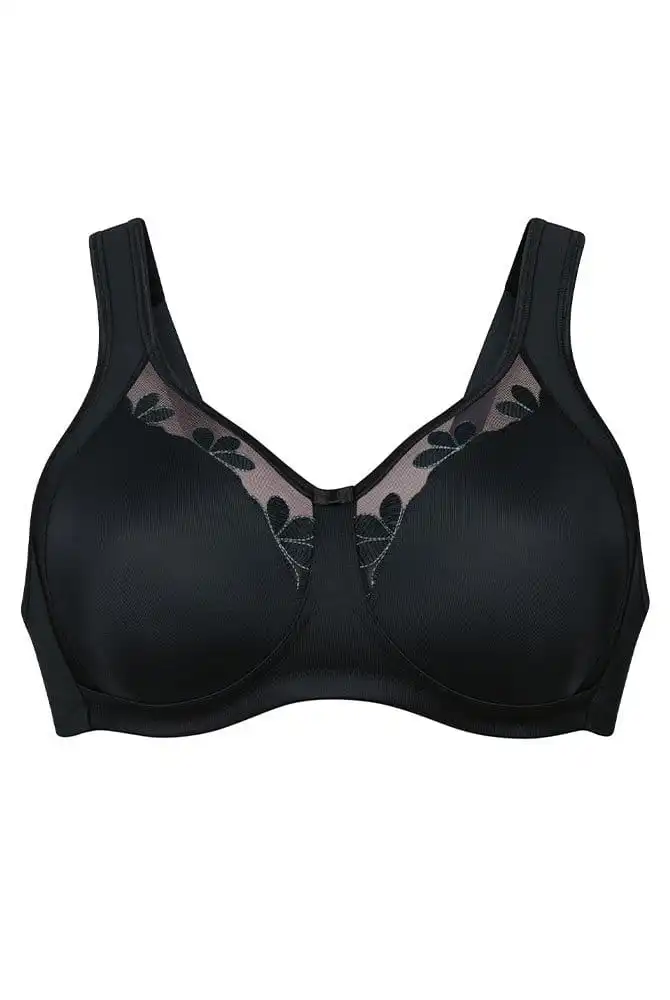Als wahres Passformwunder mit vorgeformten, nahtlosen Cups präsentiert sich der Komfort BH Sophia von Qualitätsmarke Anita. Der transparente Tülleinsatz verläuft tief bis an den schmalen Mittelsteg des BHs Sophia mit hohem Tragekomfort. Das Ergebnis: Das Dekolleté wirkt luftig und leicht. Die Blumenstickerei im Cup vermittelt dem Komfort BH feminine Eleganz und einen modernen Look. Elastische Blenden im Dekolleté und im Armausschnitt sorgen für guten und bequemen Sitz. Weich gepolsterte und verstellbare Träger entlasten angenehm und sorgen für optimale Passform. Auch für große Größen ist Komfort BH Sophia empfehlenswert.