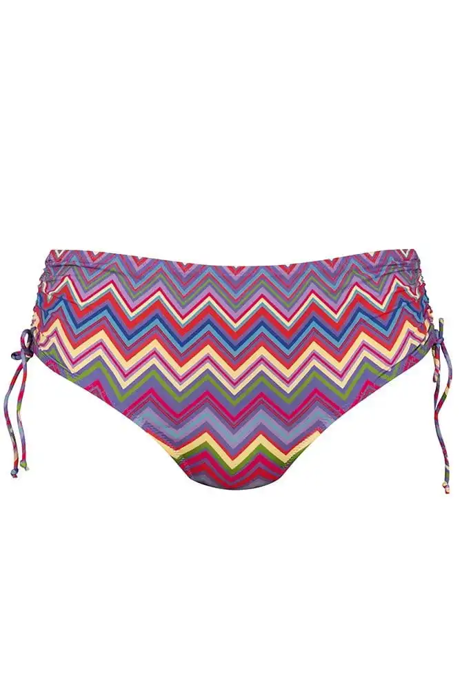 Chic und mit modischer Raffinesse wird Sie unsere Bikini-Hose der Serie Magic Wave von Anita beeindrucken. Mittels der seitlichen Bänder können Sie den Bund in der Höhe variieren. Weich schmiegt sich das elastische Material an Ihre Haut. Der Beinausschnitt ist moderat und dadurch kann nichts verrutschen. Die hübsche Badehose mit modernem Zickzackprint passt wunderbar zu Bikini Oberteil Laila der gleichnamigen Serie. Oder kombinieren Sie zu der komfortablen Badehose ein unifarbenes Oberteil, zum Beispiel einen Bikini oder ein Tankini Oberteil.