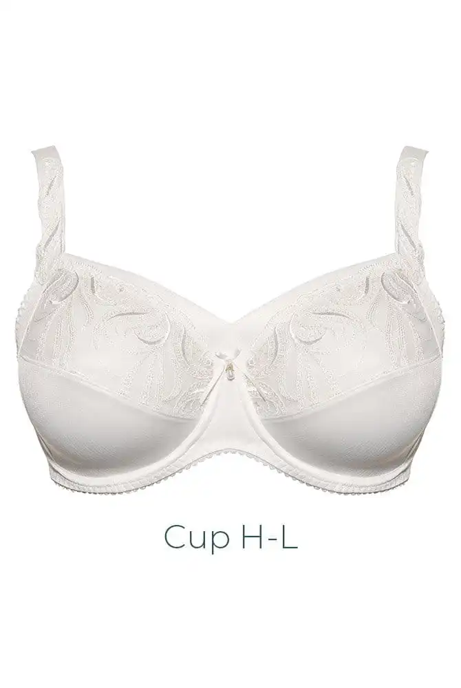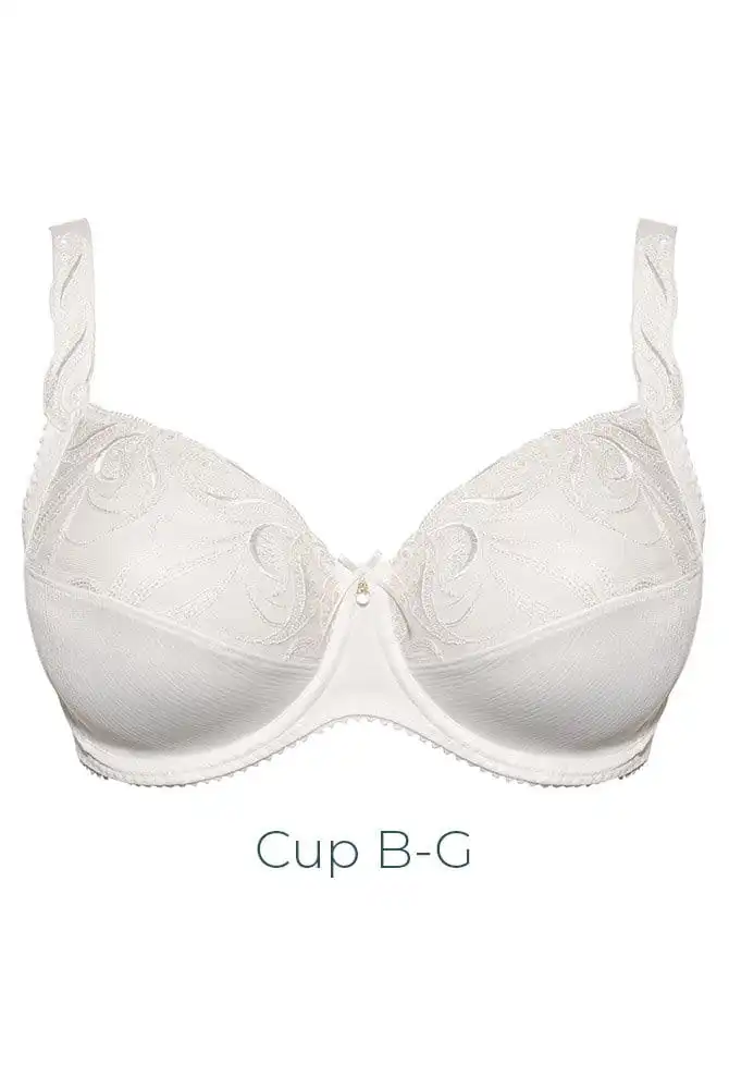 Bügel-BH Carmen – das perfekte Darunter für alle Frauen mit großer Oberweite, die auf eine geschmeidige Optik und auf hochwertige, erlesene Materialien nicht verzichten möchten. Der elegante Bügel-BH Carmen, von Qualitätsmarke Ulla, verwöhnt mit angenehmem Tragegefühl, mit weicher Struktur und dezentem Glanz im Untercup aus festem Simplex in feinem Streifendesign.
