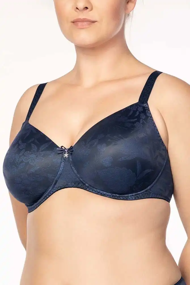 Belgisches Blütendesign kombiniert mit floraler Stickerei und zarter Microfaser – damit punktet Serie Jasmin von Ulla. Bügel BH Jasmin ist gemoldet, dass heißt leicht wattiert und mit einem genähten Innencup versehen. Damit erhalten Sie einen „unsichtbaren“ BH, der sich unter enger Kleidung nicht abzeichnet, da die Nähte unter wunderschönem Stoff verborgen sind. Sie müssen jedoch auf ein dreigeteiltes Cup und den damit verbundenen Halt und die perfekte Passform nicht verzichten. Das Rückenteil unseres BHs Jasmin ist mit Tüll verstärkt und garantiert so Halt und Funktion, ohne dass das Material seine Form verliert. Besonders stilvoll sind die Jacquard-Träger, die es je nach Größe in angepassten Breiten gibt. Ein Hingucker ist die hübsche feminine Verzierung in der Mitte.