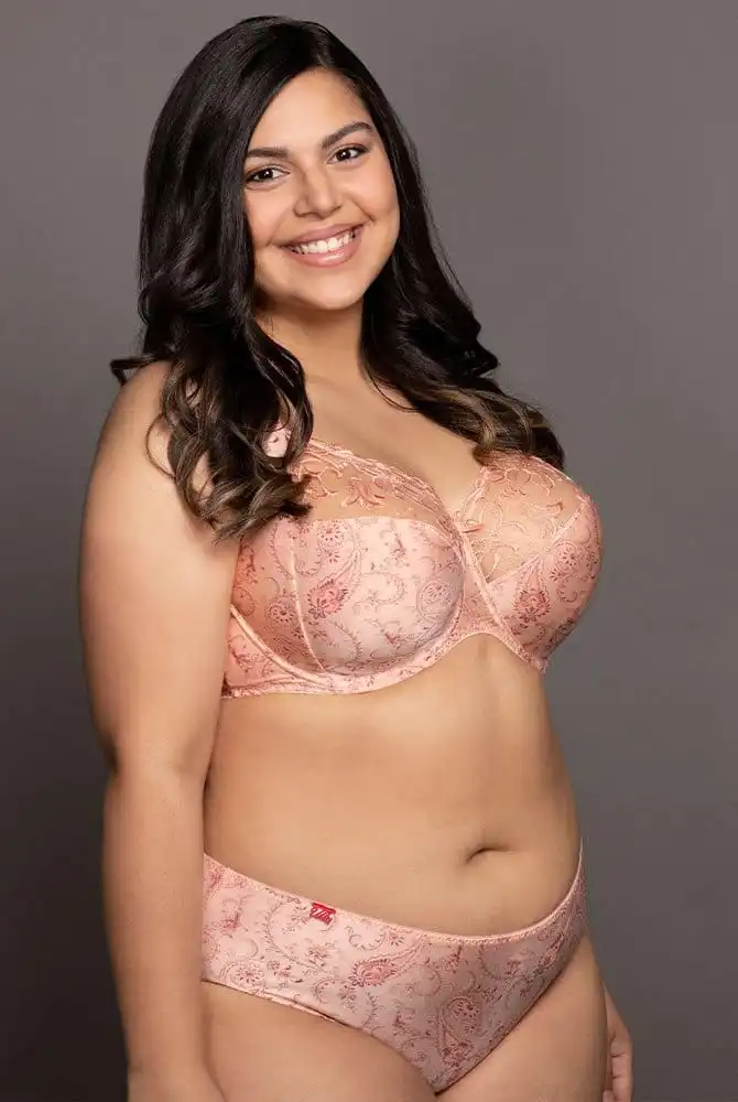 Zartes Blütendesign kombiniert mit superweicher Microfaser. Slip Zoe von Qualitätsmarke Ulla überzeugt durch Funktionalität und Design. Der Slip ist für große Größen entwickelt und schmiegt sich passgenau an Ihren Körper. Der Beinausschnitt ist moderat hoch, so dass sich nichts verschieben kann. Der mittelhoch geschnittene Bund sitzt bequem hüfthoch. Hochwertige Microfaser ist atmungsaktiv und die hübsche Struktur aus floralem Ornament sieht wunderschön aus. Slip Zoe ergänzt perfekt die BHs der Serie.