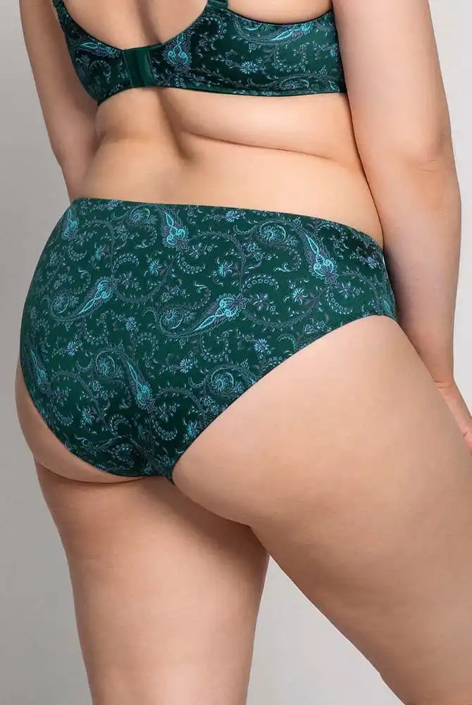 Zartes Blütendesign kombiniert mit superweicher Microfaser. Slip Zoe von Qualitätsmarke Ulla überzeugt durch Funktionalität und Design. Der Slip ist für große Größen entwickelt und schmiegt sich passgenau an Ihren Körper. Der Beinausschnitt ist moderat hoch, so dass sich nichts verschieben kann. Der mittelhoch geschnittene Bund sitzt bequem hüfthoch. Hochwertige Microfaser ist atmungsaktiv und die hübsche Struktur aus floralem Ornament sieht wunderschön aus. Slip Zoe ergänzt perfekt die BHs der Serie.